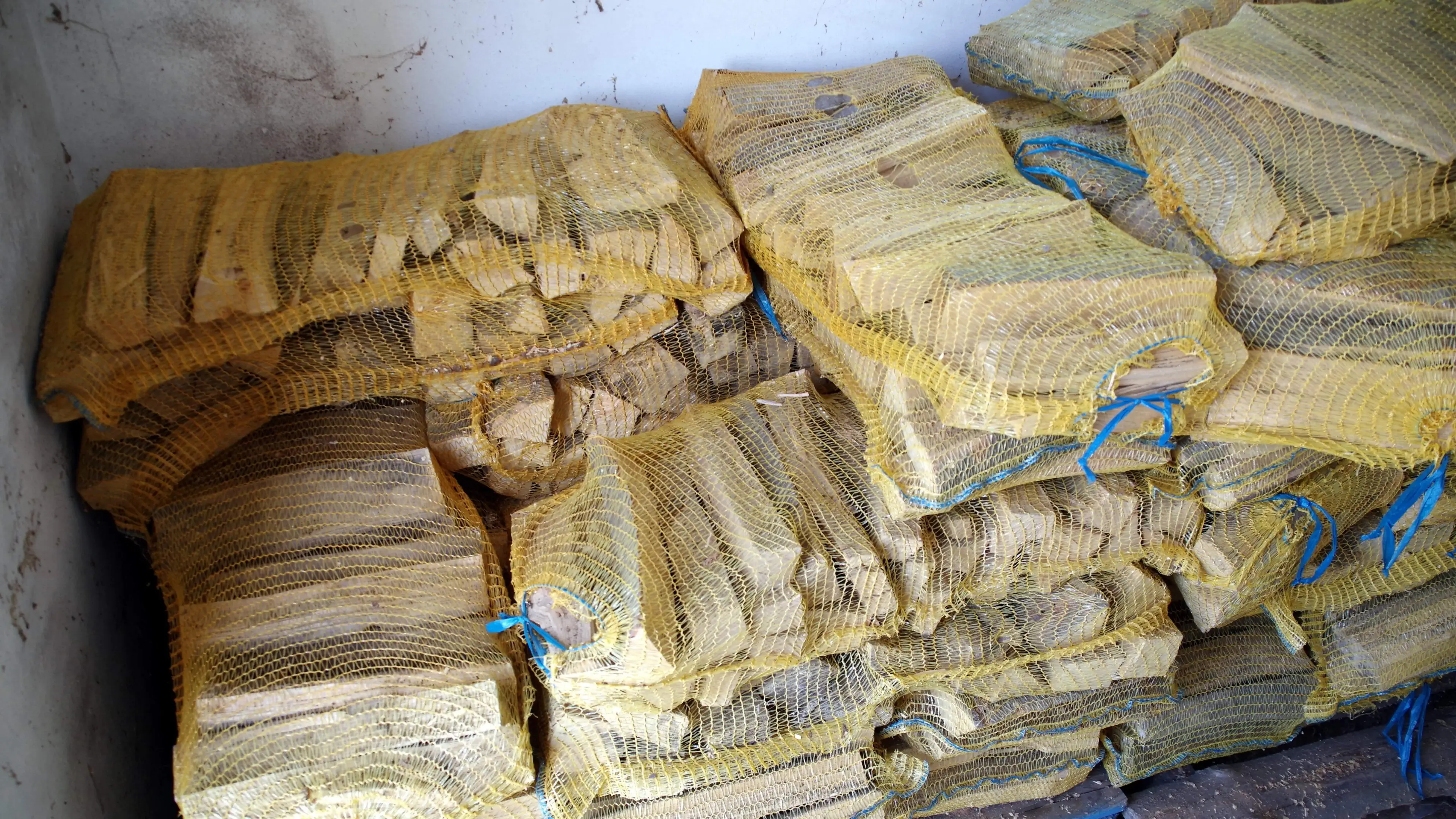 Trockenes Brennholz Buche - geeignet für die sofortige Verbrennung, mindestens ein halbes Jahr lang luftgetrocknet, Feuchtigkeitsgehalt unter 30 %. Wird nur in Säcken von 50 x 80 cm, handgespalten, in 33 cm langen Stücken hergestellt.